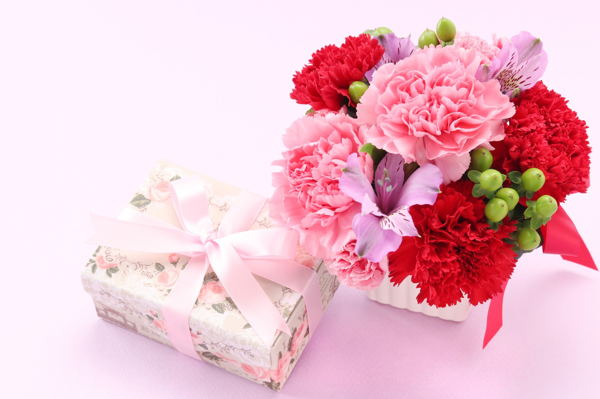 可愛くアレンジされたコンパクトな花は特に女性から喜ばれることが多いプレゼントの一つです。そのため母の日やホワイトデーのお返し・誕生日等、花器にもこだわったプリザーブドフラワーや生花のアレンジメントは大切な人への贈り物として大変人気があります。